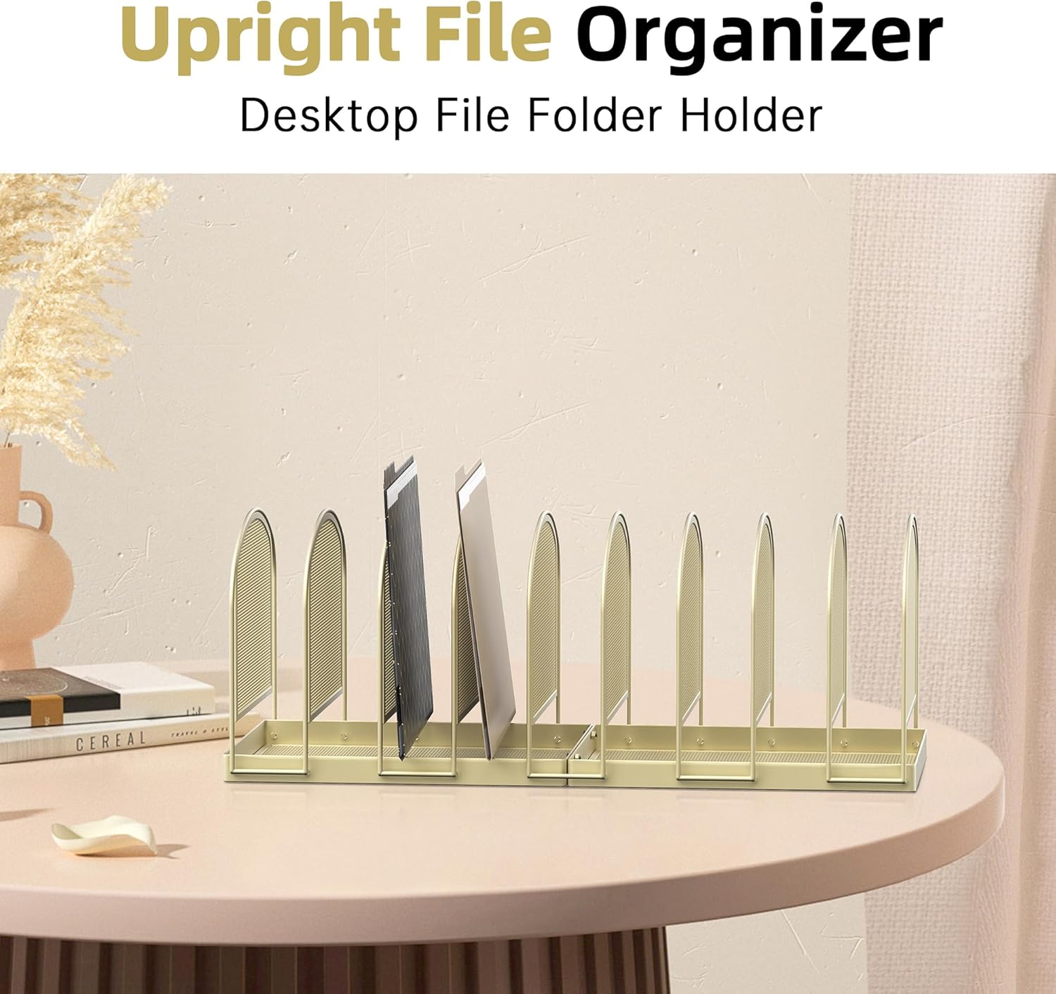 SUPEASY File Organizer 9-Section Mesh Desk Organizer, Upright File Organizer Desktop Organizer File Sorter, File Folder Holder for Office Supplies, Golden Yellow