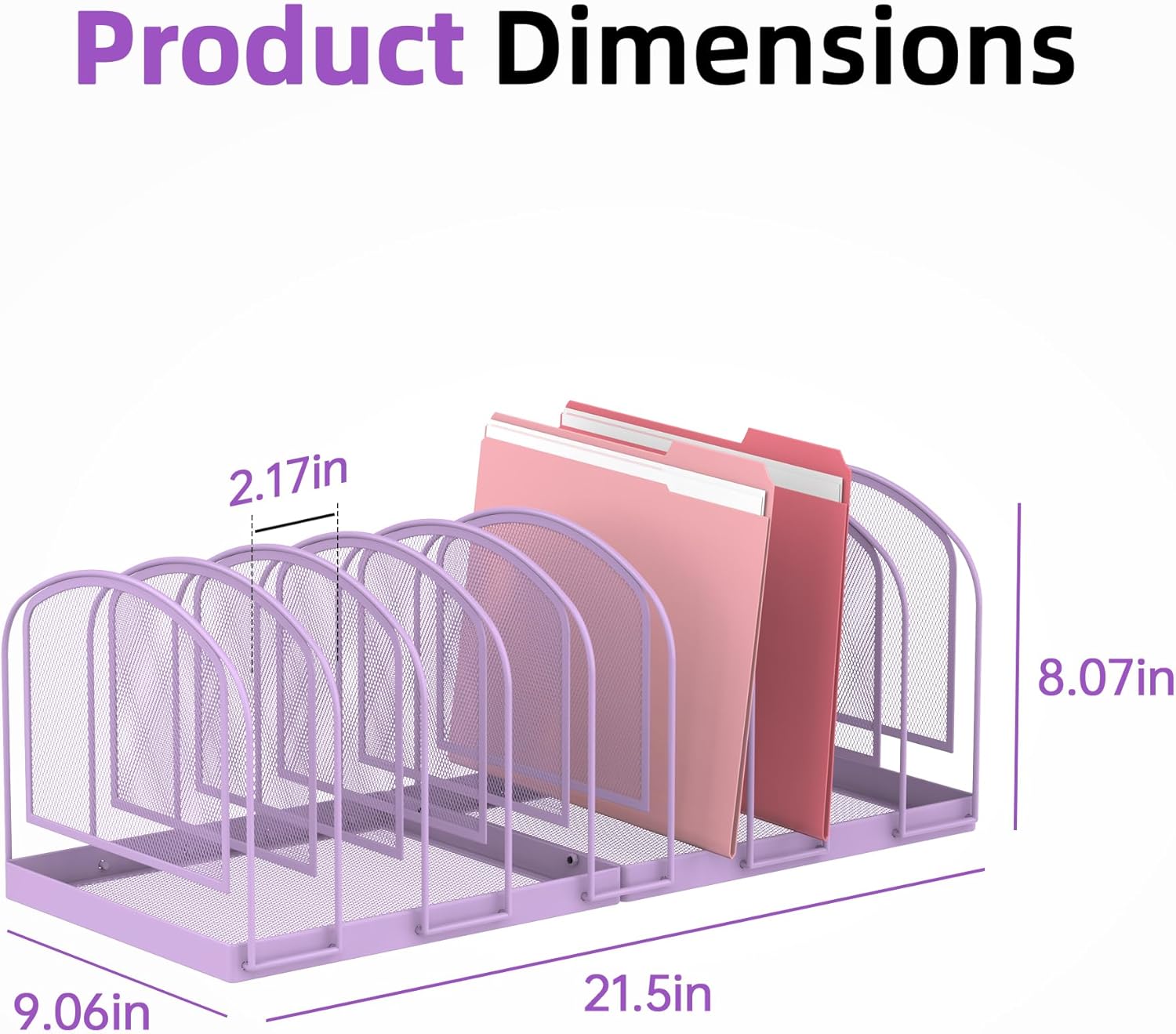 SUPEASY File Organizer 9-Section Mesh Desk Organizer, Upright File Organizer Desktop Organizer File Sorter, File Folder Holder for Office Supplies, Purple