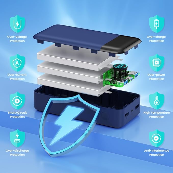 Portable Charger 50800mAh Power Bank,25W PD QC 4.0 USB C Fast Charging External Battery Pack,Travel Outdoor Essentials Portable Cell phone Charger Compatible with iPhone 17/16/15/14/13,Android-Blue