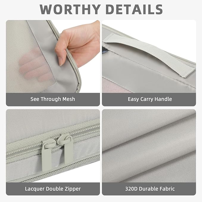 - ORGANISED&DURABLE:Super Durable 320D Fabric and Considerate Designed Construction Ensures Storing Your Clothes Neatly in Luggage without Adding Extra Weight.Premium Sturdy&Smooth Double Way Zipper with Extended Cord Ensure Fast&Easy Opening and Closing of the Packing Cubes.