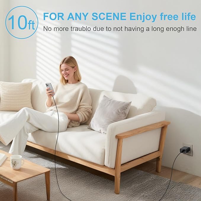 - [What You Get] 2Pack iPhone charger block + 2Pack USB C Long Charging cable (10Ft). We will provide a 12-month worry-free warranty friendly customer service. Please don't hesitate to contact us and we promise to solve your problems within 24 hours