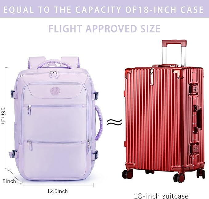 - STURFY AND LIGHTWEIGHT, SUITABLE FOR TRAVEL: The travel backpack is made of lightweight and sturdy polyester material, with a zipper that is easy to close and open. This portable backpack meets the personal carry on standards of airlines and can be installed under the overhead luggage rack or seat. You can easily install travel equipment for 2-4 days, equivalent to the capacity of an 18 inch suitcase, making it a good choice for weekend vacations and business trips