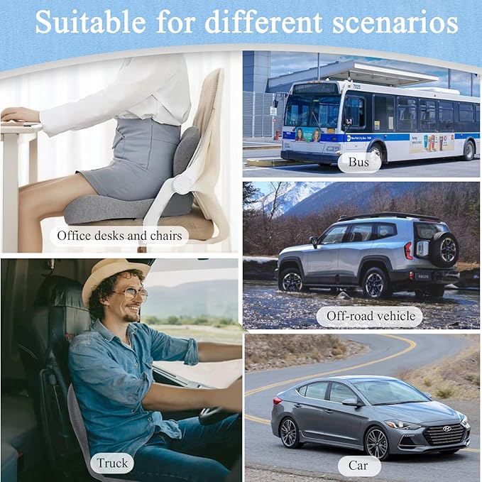 - ๐ใ Upgrade Ergonomic Design ใSay goodbye to back and leg pain during long drives! The unique ergonomic and orthopedic design of our seat cushions can help relieve sciatica, pelvic, cheekbone or tailbone pain while driving. Enjoy reduced fatigue and numbness while staying comfortable on the road.