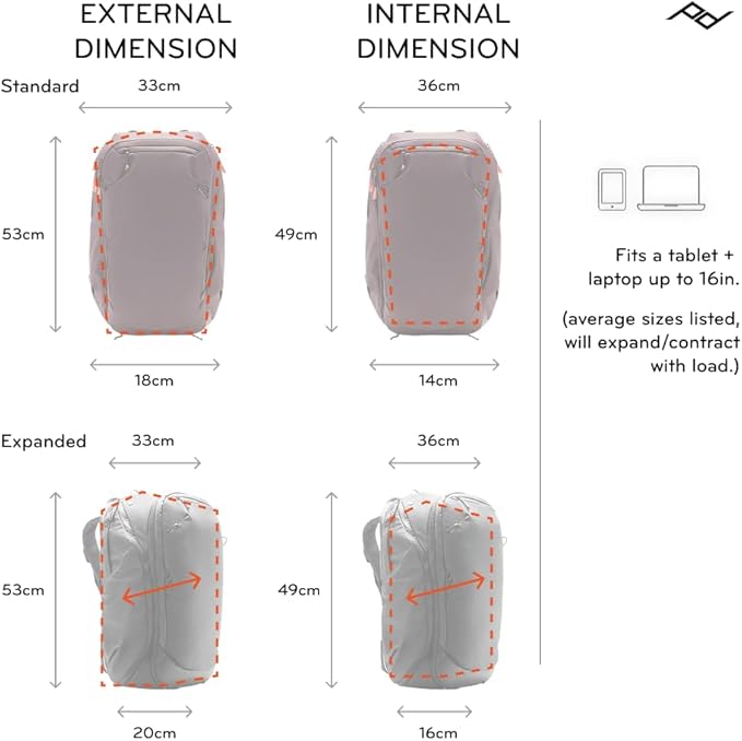 - DESIGNED TO ADAPT: Expandable from 35L to 45L, this carry on approved pack adjusts to fit your load. Side pockets expand to hold bottles or tripods, while top, side, and rear access points keep your gear within easy reach.