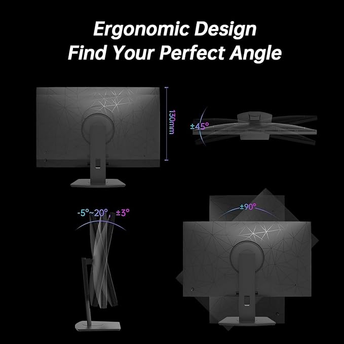- [Designed for Your Comfort and Convenience] This vertical monitor is built for your comfort, with adjustable height, tilt, swivel, and pivot options. The quick-release stand supports easy desk and wall mounting (VESA 100x100mm compatible). Dominate your games in style!