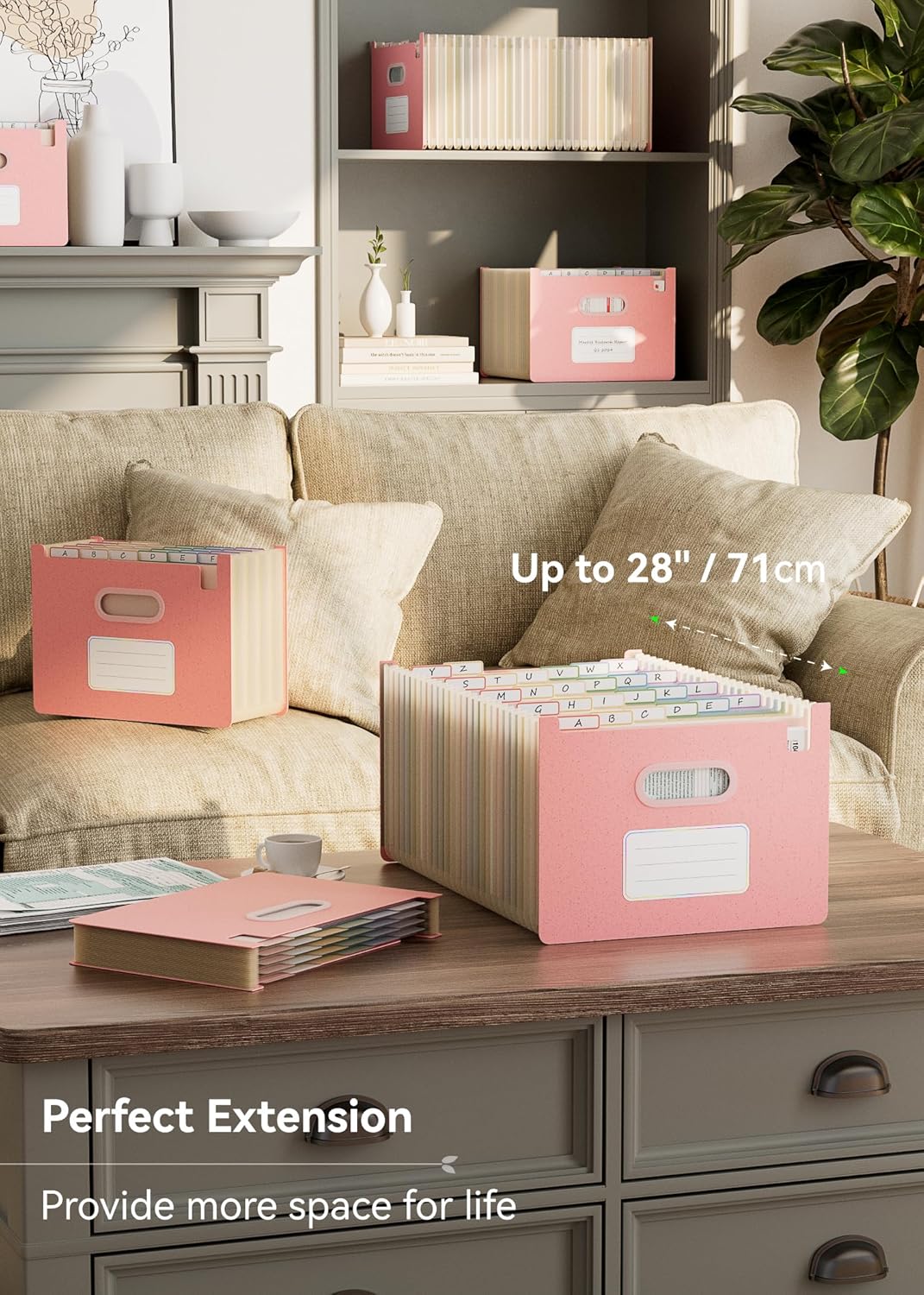 Accordion File Organizer, 26 Pockets Wheat Straw Expanding File Folders, Upright&Open Top, A-Z Bill Receipt Organizer, 100% BPA Free, Return to Nature, Healthy Living, Letter/A4 Size-Strawberry Pink