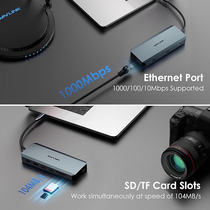 WAVLINK USB C Docking Station Dual Monitor, USB-C Hub Laptop Triple Display with 2 HDMI,DisplayPort, 100W PD Charging, Ethernet, 5 USB, SD/TF Read, Audio for MacBook Dell HP Lenovo Surface, Grey