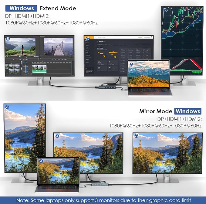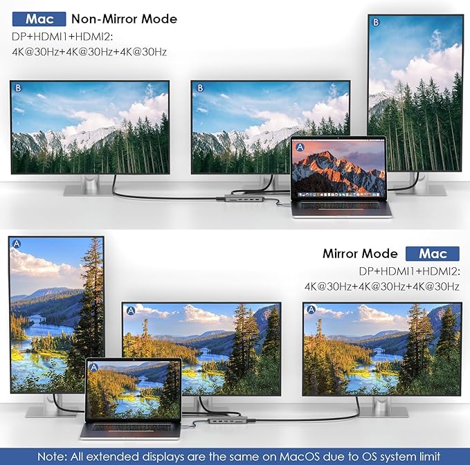 - Triple Display USB C Dock: This USB-C Docking Station has three high-definition video output ports, Dual HDMI and one DisplayPort. Only the Windows system supports the Triple display ( MST), Mac OS is not supported