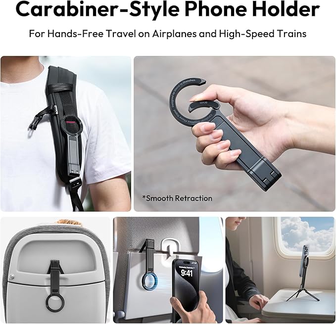 - 【Quick & Easy Attachment】The carabiner-style design allows for fast and secure gripping, keeping your hands free during travel or while capturing moments.