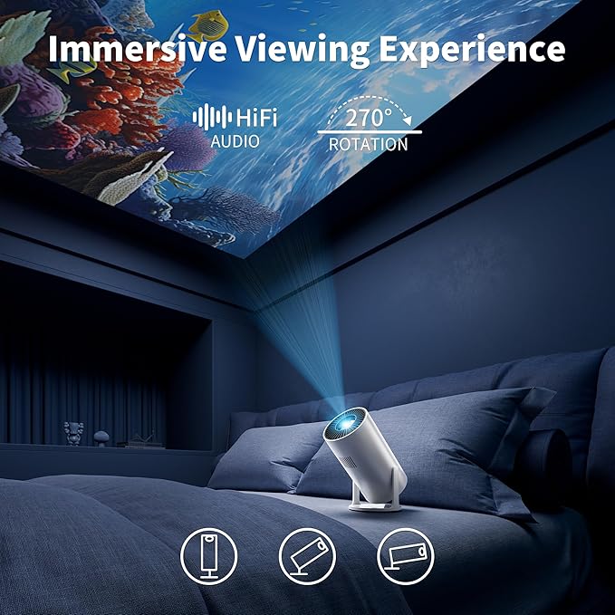 - 【Movie Projector with Immersive Sound】Equipped with HiFi speakers that deliver rich, high-fidelity audio, the mini portable projector creates an immersive cinematic experience even at home. Provides you a comfortable and mild sleep environment at movie nights especially when paired with its auto sleep mode