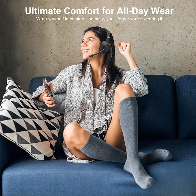 - Comfort & Flexibility: Our Bluetooth headset with breathable ear cushions and 135ยฐ adjustable microphone experiences superior communication, designed for comfort and performance. Whether you're deep in focused work or navigating calls, keeps you cool and comfortable during marathon meetings. Whether youโre walking around the house, working out, or cooking up a storm, This wireless headset with mic for work turns your everyday tasks into a smooth, immersive experience