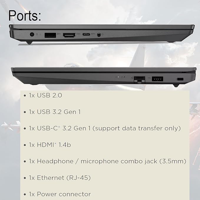 - 【Connectivity and Ports】1 x USB 3.2 Type-C, 1 x USB 3.2 Type-A, 1 x USB 2.0 Type-A, 1 x HDMI, 1 x RJ45, 1 x headphone/microphone combo, Webcam, Numeric Keypad, Wi-Fi 6 and Bluetooth.