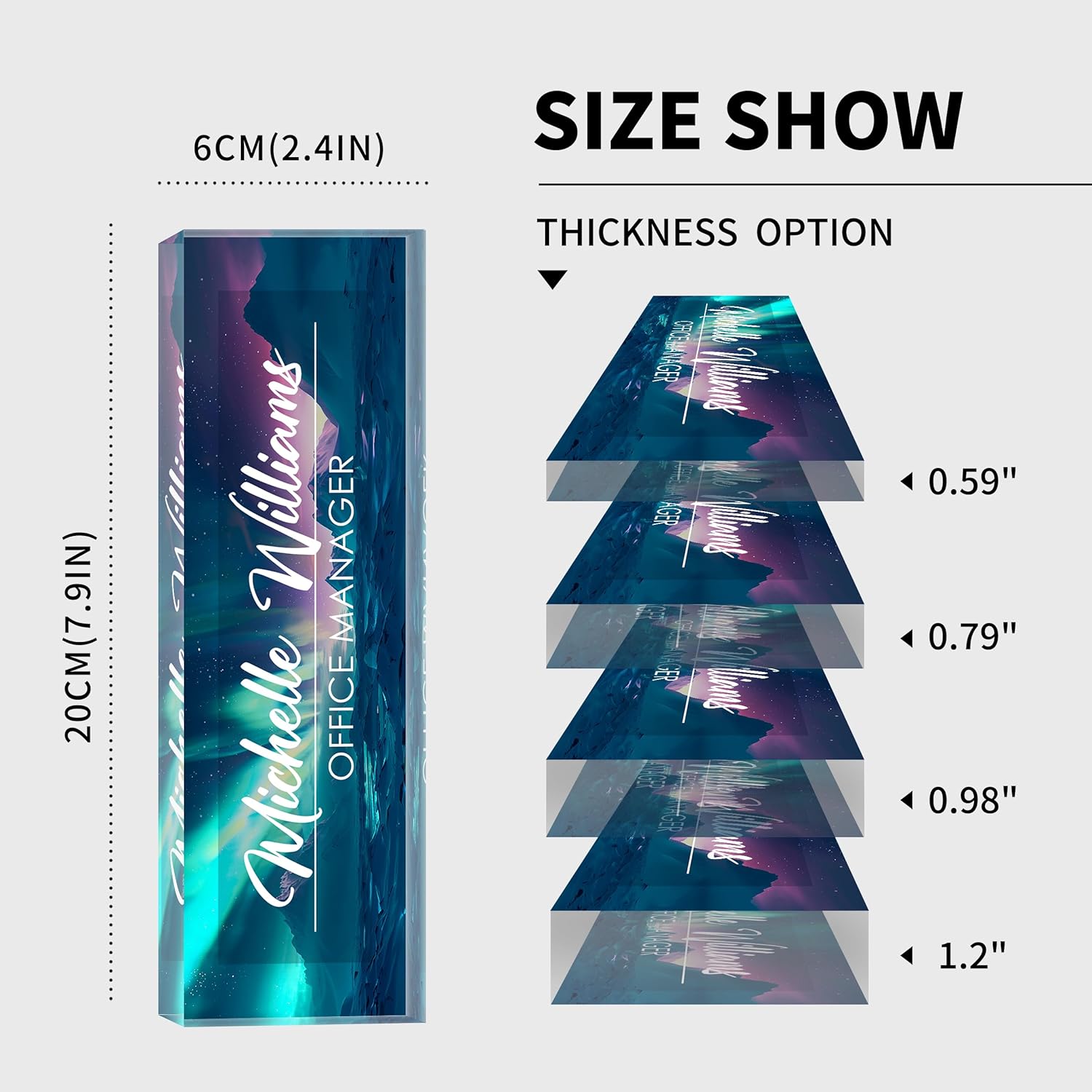 - 【Perfect Office Decor】Desk name plate personalized may be an indispensable item around you. It can be used as decoration for various occasions, such as offices, study rooms, conference rooms, classrooms. It also comes in 4 different sizes, suitable for different office scenarios, Clear 3D effects showcase your favorite fully designs and names, add an extra touch of elegance to your office.