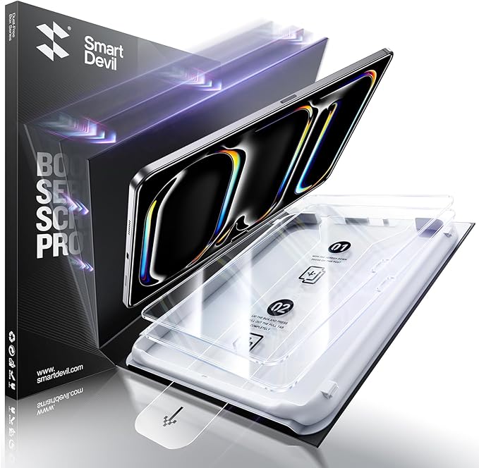 SMARTDEVIL Screen Protector for iPad Pro 13 inch 2024 (M4) with Easy Installation Frame, 9H Clear Tempered Glass Film, Anti-Shatter, 2 Pack