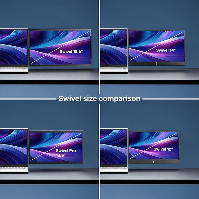 - Patented 360° Swivel Hinge – The patented swivel hinge offers 360° swivel and 270° rotation, allowing you to adjust the attachable monitor to your preferred angle. Effortlessly switch between shared views and personal setups, perfect for collaboration or multitasking with your dual monitor setup.