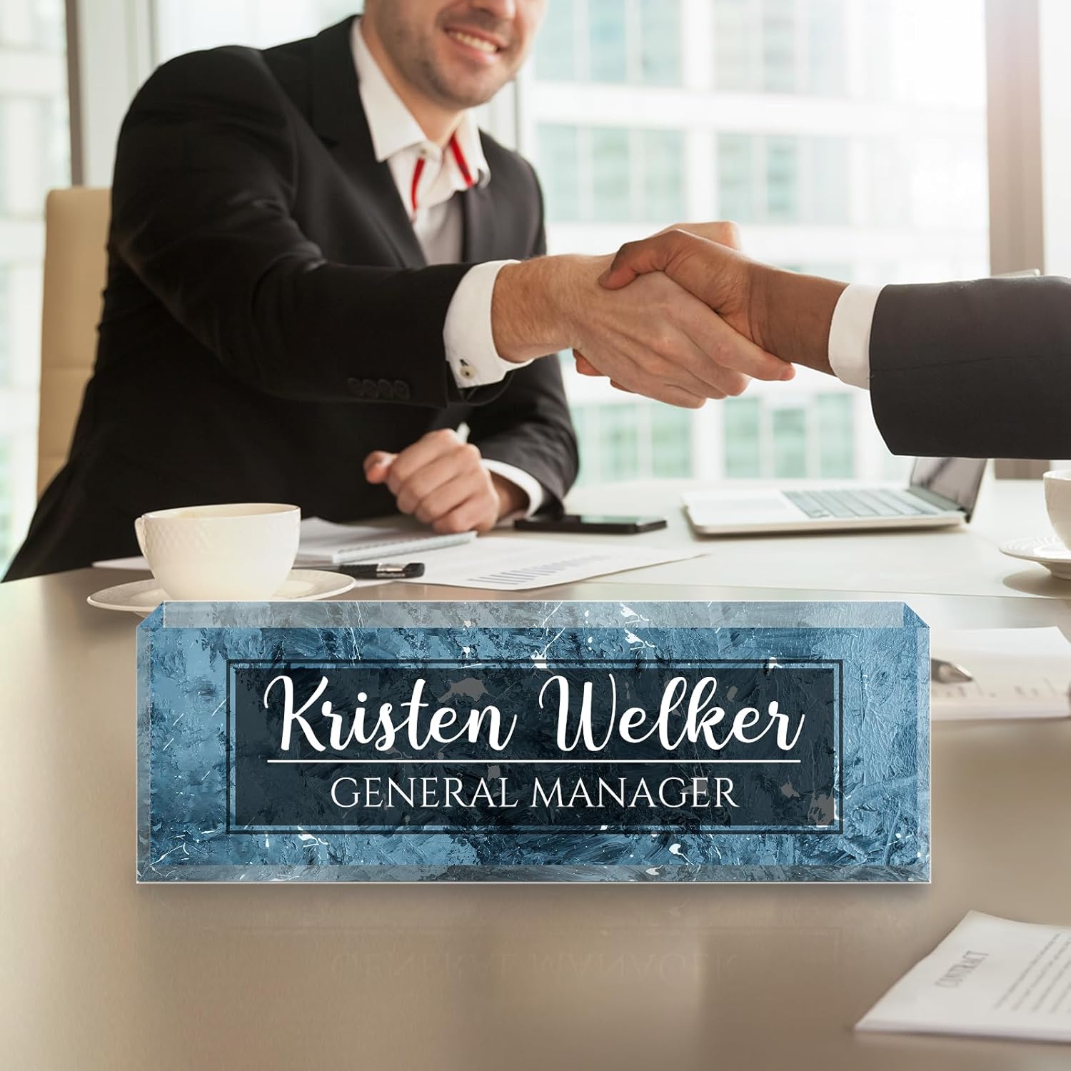 Personalized Name Plate for Desk - Custom Engraved Name Plates for Man - Boss Day Gifts for Boss - Acrylic Office Decor Appreciation Gifts for Teacher Nurse Coworker Social Worker (Blue)