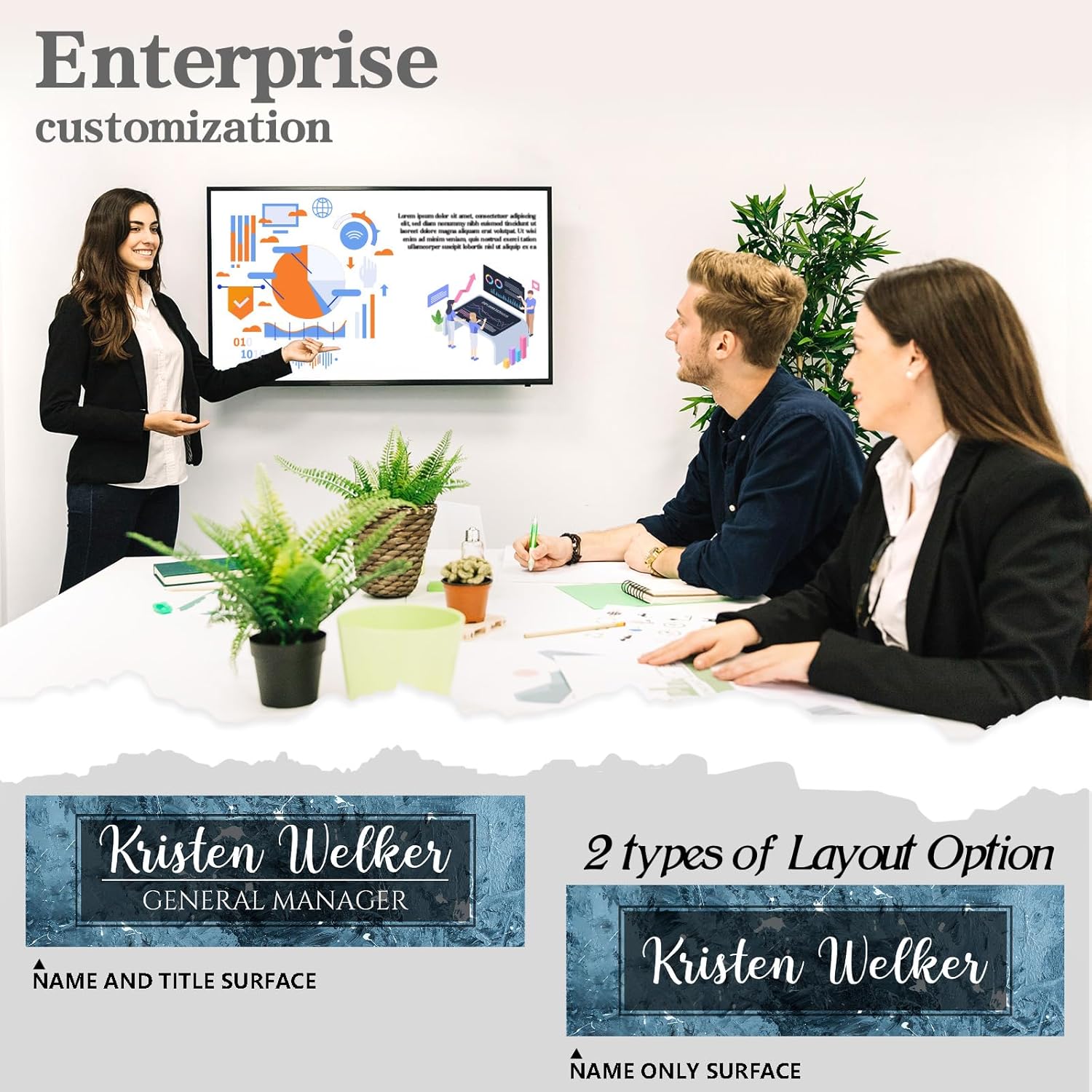 - 【Personalized Name Plate for Desk】Create a unique desk name plates in just four easy steps. We craft bespoke nameplates featuring your name and title, with options to choose your preferred style, design, and front. You can even upload your photo and logo for a truly personalized nameplate. Our talented design team is dedicated to bringing your vision to life. Elevate your office with a professional and unique nameplate that reflects your style.