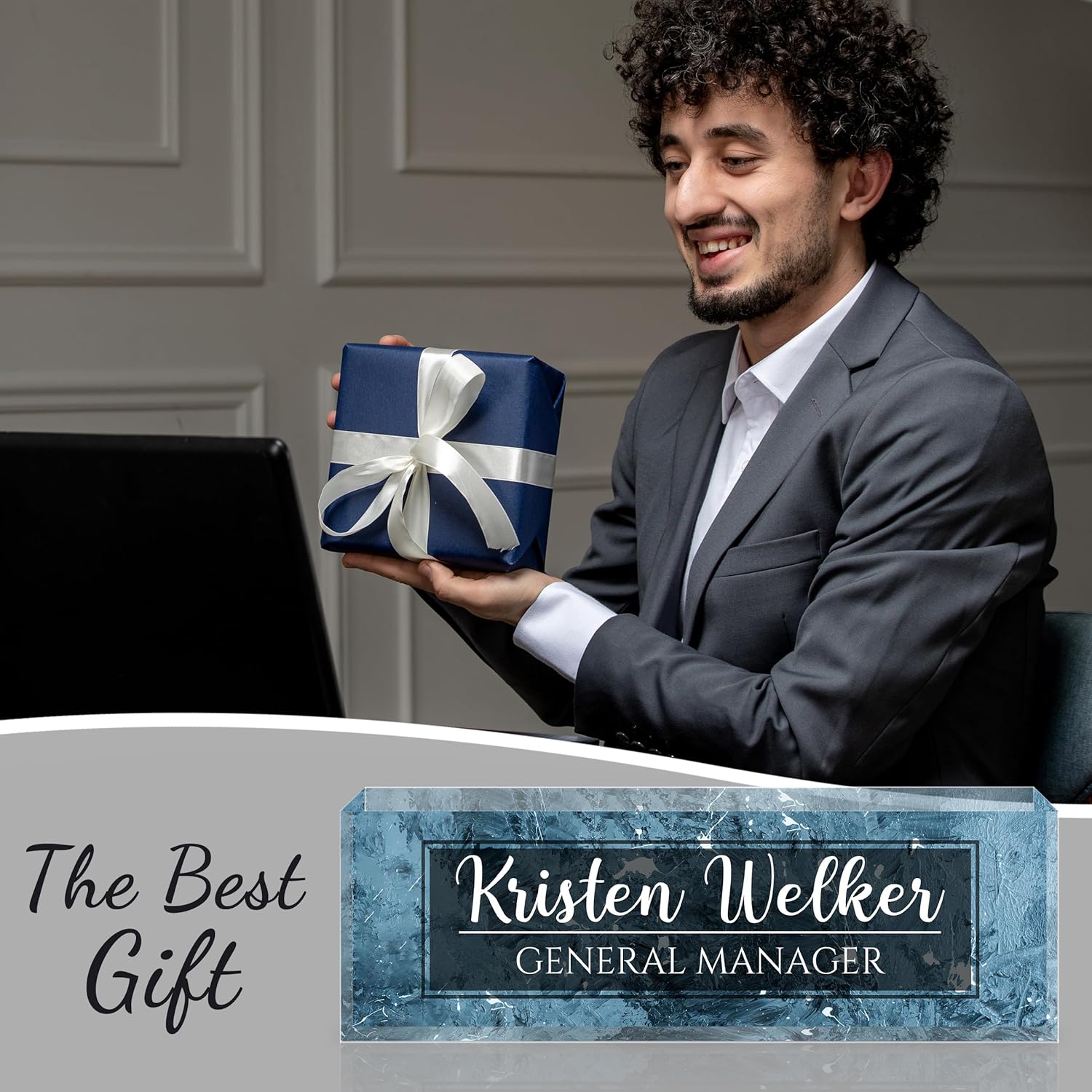 - 【Boss Day Appreciation Gift】 Customized desk name plates are a memorable and unique Boss Day gift. It is an ideal way to express appreciation to coworkers, managers, supervisors, bosses, etc. Perfect for promotions, employee recognition, Boss Day, Nurses Week, Teachers Day, and more. This thoughtful gift shows your care and appreciation and comes with a charming gift box and gift-wrapping service to make it even more special. Perfect as boss day gifts