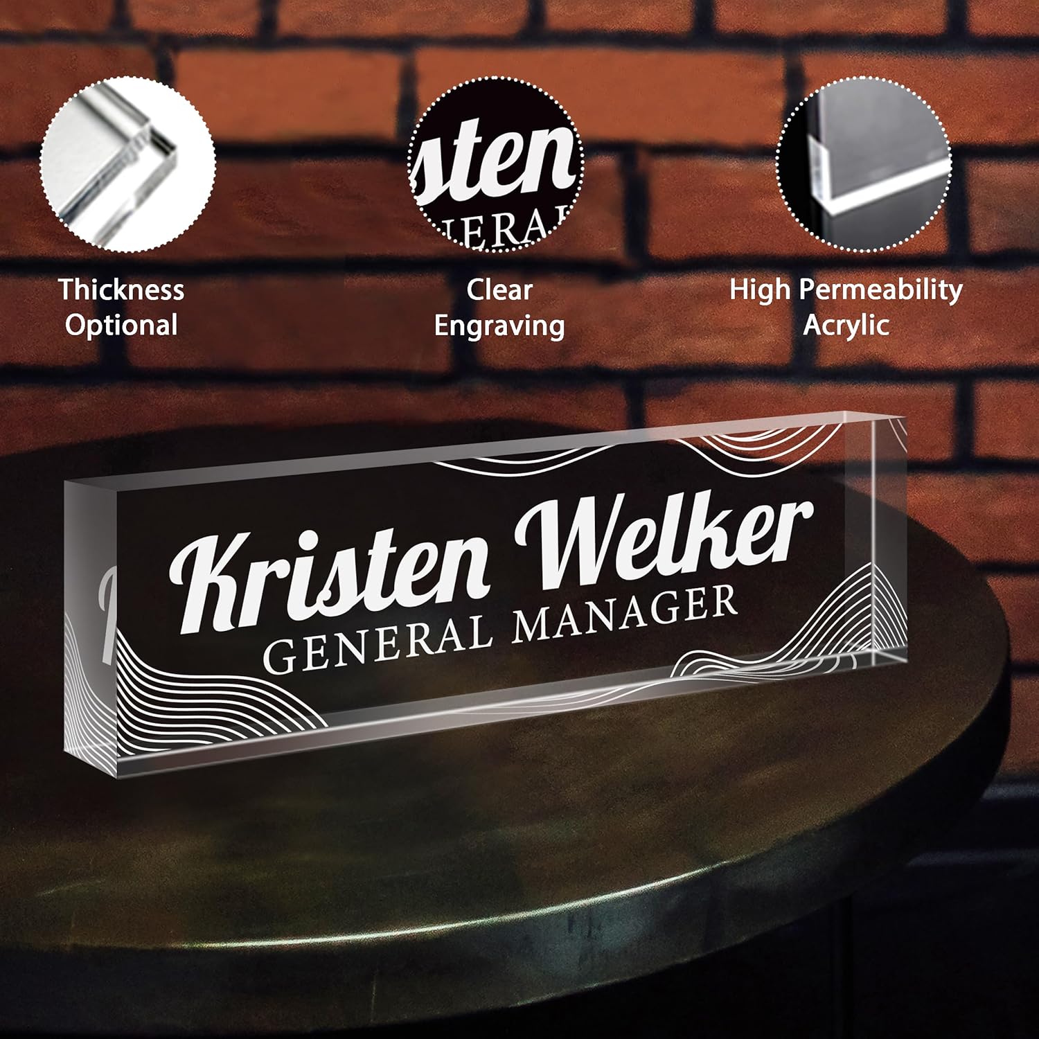 - 【Thickness upgraded to 0.79-1.18 inches】 According to market research, most people who received 0.59-inch thick acrylic nameplates would have problems with instability and easy to tip over, which would bring a terrible shopping experience. From the customer's perspective, we pause Selling a 0.59-inch nameplate, we provide 0.79-inch/0.98-inch/1.18-inch thick acrylic for selection. The 1.18-inch size is the most popular gift size, More fashionable and atmospheric, We aim to bring your vision to life!