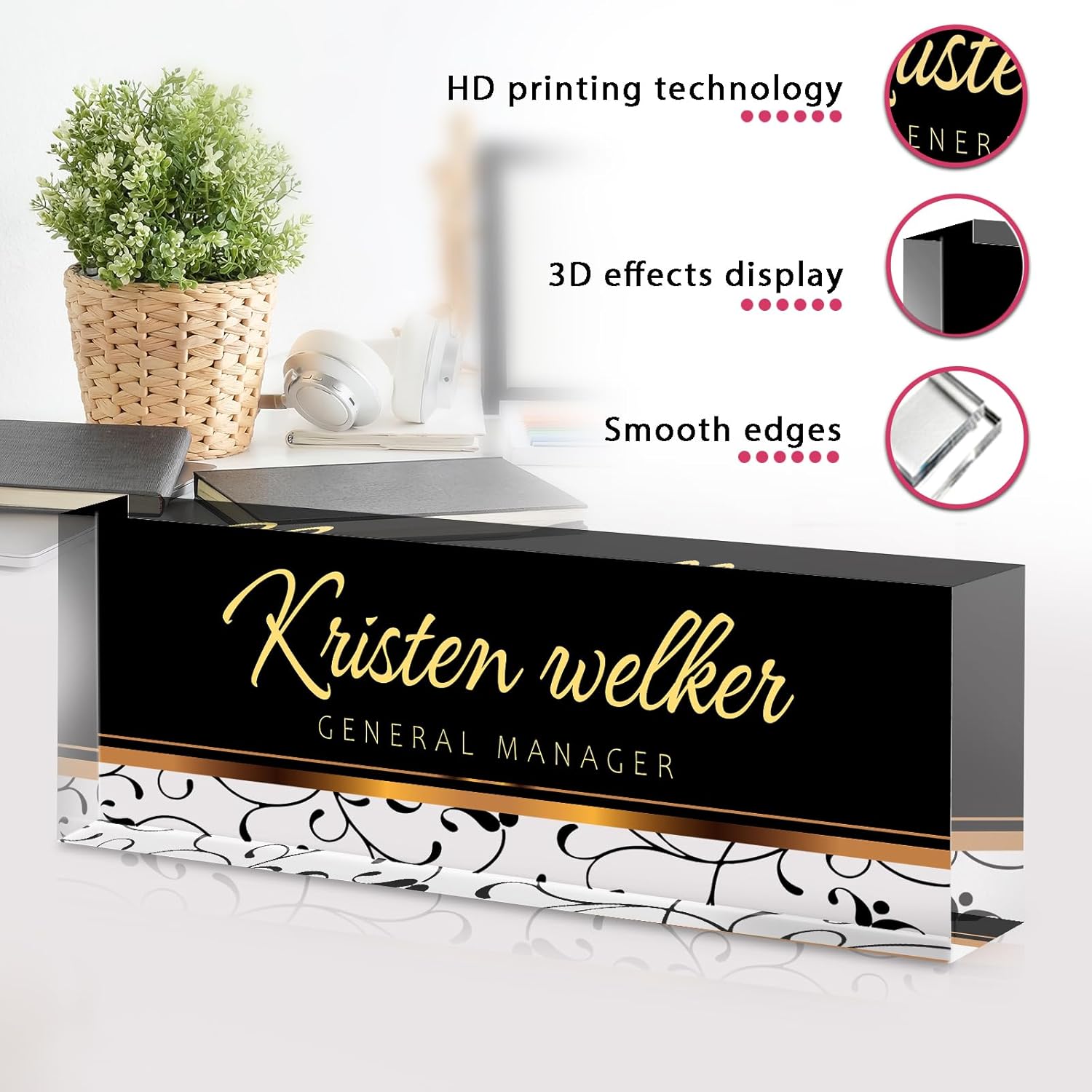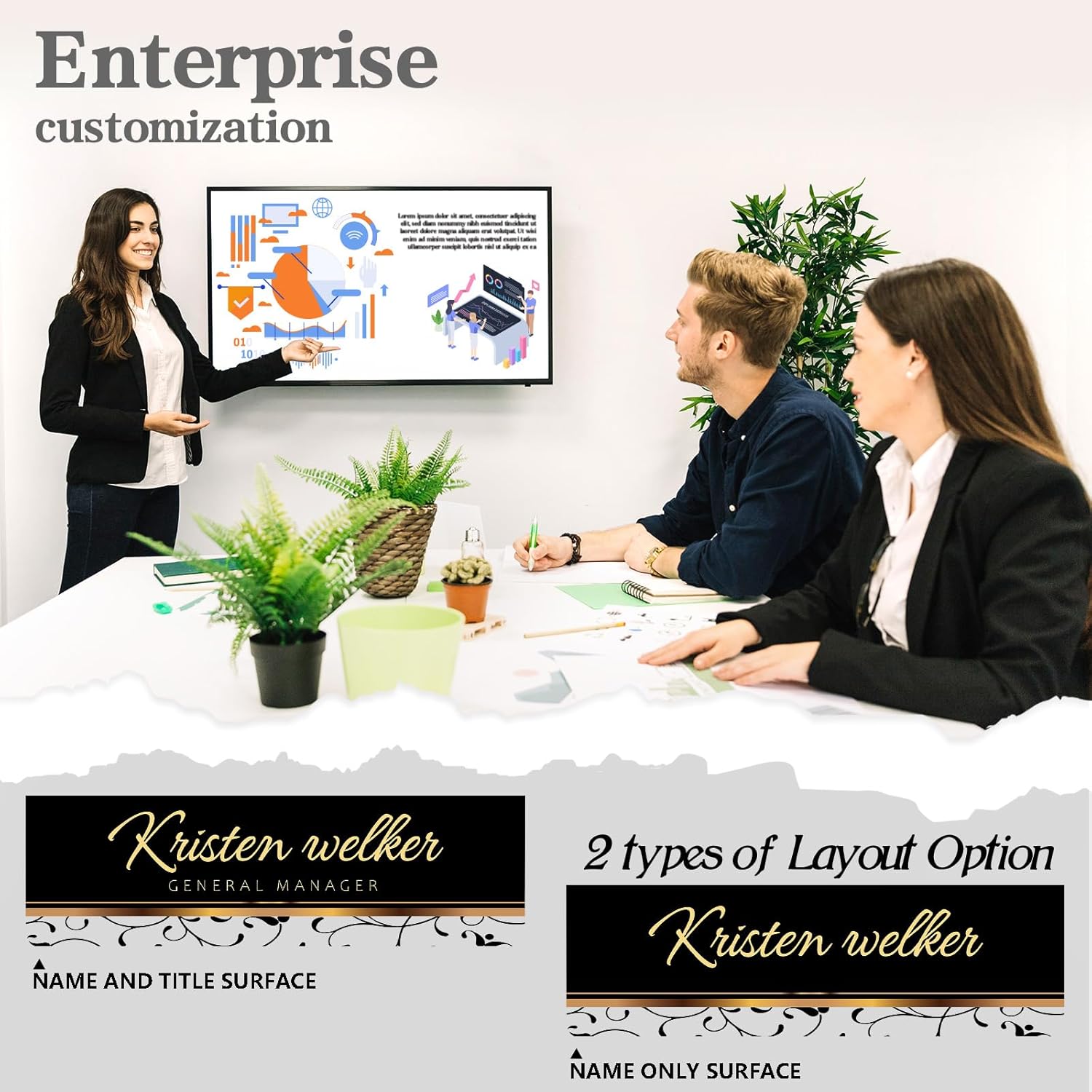 - 【Personalized Name Plate for Desk】Create a unique desk name plates in just four easy steps. We craft bespoke nameplates featuring your name and title, with options to choose your preferred style, design, and front. You can even upload your photo and logo for a truly personalized nameplate. Our talented design team is dedicated to bringing your vision to life. Elevate your office with a professional and unique nameplate that reflects your style.