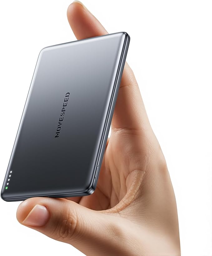 MOVE SPEED 0.3'' Ultra Slim MagSafe Portable Charger, 5000mAh Magsafe Battery Pack iPhone 17 Air Accessories, Magnetic Power Bank with USB C Port for iPhone 17 Pro Max Air/16/15/14/13/12, Glacier Gray