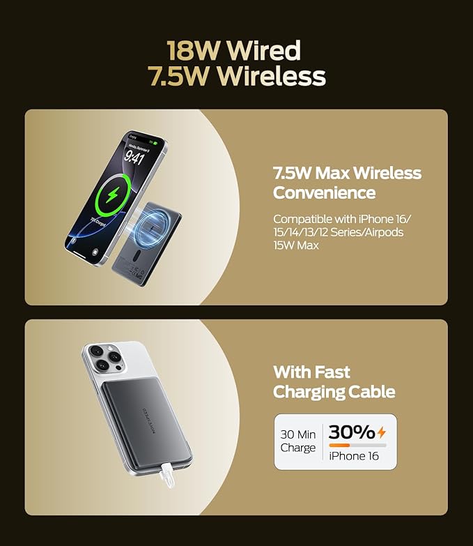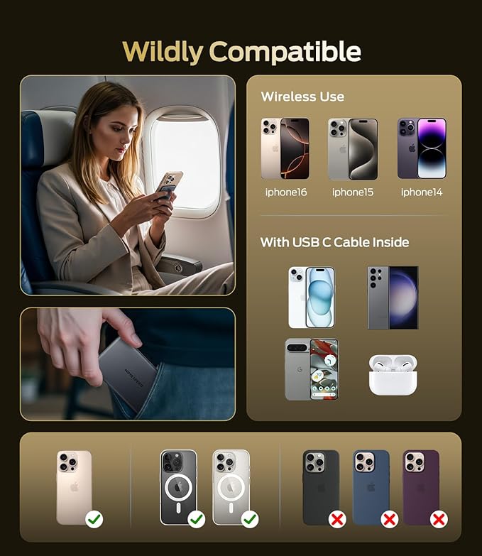 - Special Feature : 0.3'' Ultra-Slim,Flight-approved, 18W Wired Output and Wireless Fast Charging for iPhone 16/15/14/13/12, 24-Month Warranty, Heat Dissipation System,NTC Temperature Control Chip, LED Indicator Lights, Slim,Card-Size 0.3'' Ultra-Slim,Flight-approved, 18W Wired Output and Wireless Fast Charging for iPhone 16/15/14/13/12, 24-Month Warranty, Heat Dissipation System,NTC Temperature Control… See more