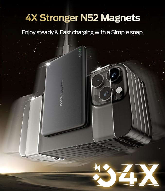- 【Super Strong Magnet, Easy to Carry】Equipped with an iPhone-compatible magnetic array and aerospace-grade N52 magnets, it offers 4x stronger magnetic force. With its curved-edge design, it attaches accurately and securely. Even during workouts, commutes, or accidental drops – it stays firmly in place, just like a built-in battery.