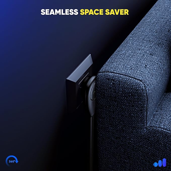 - 360° Rotating Flat Plug: Fully adjustable to fit into tight spaces and behind furniture with ease.