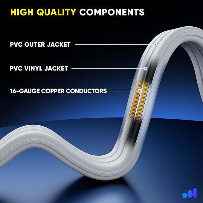 - Heavy-Duty Build: 16 AWG wire supports 13A / 125V / 1625W for safe, reliable power.