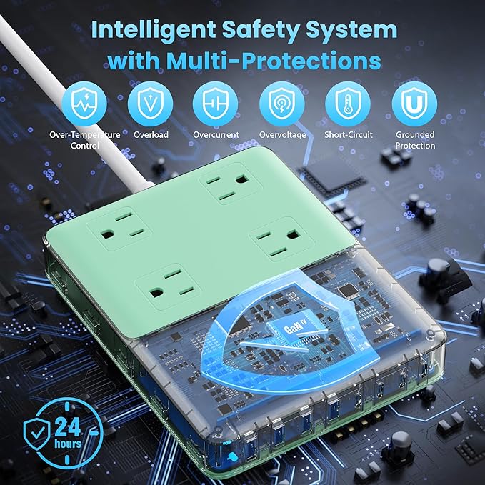 - 【Trustworthy Multi Plug Outlet Extender with 3 Years Warranty】Package includes USB C Fast Charging Station with 5ft undetachable extension cord (12-in-1, 200W), user manual, friendly customer service.