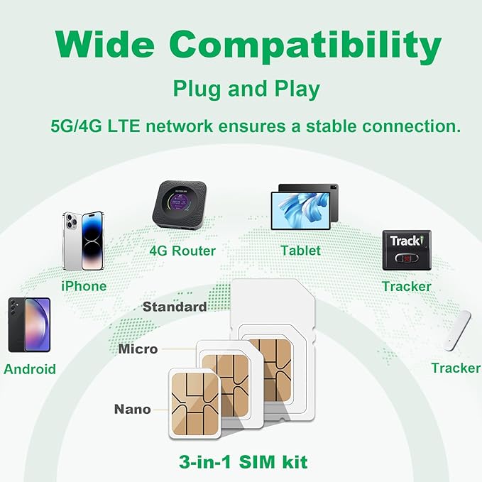 - Device Compatibility - SIM card for global travel is compatible with iOS & Android, mobile phone, tablet, WiFi hotspot, portable routers, and other unlocked IoT devices. The EIOTCLUB card is pre-cut into standard, micro, and nano sizes