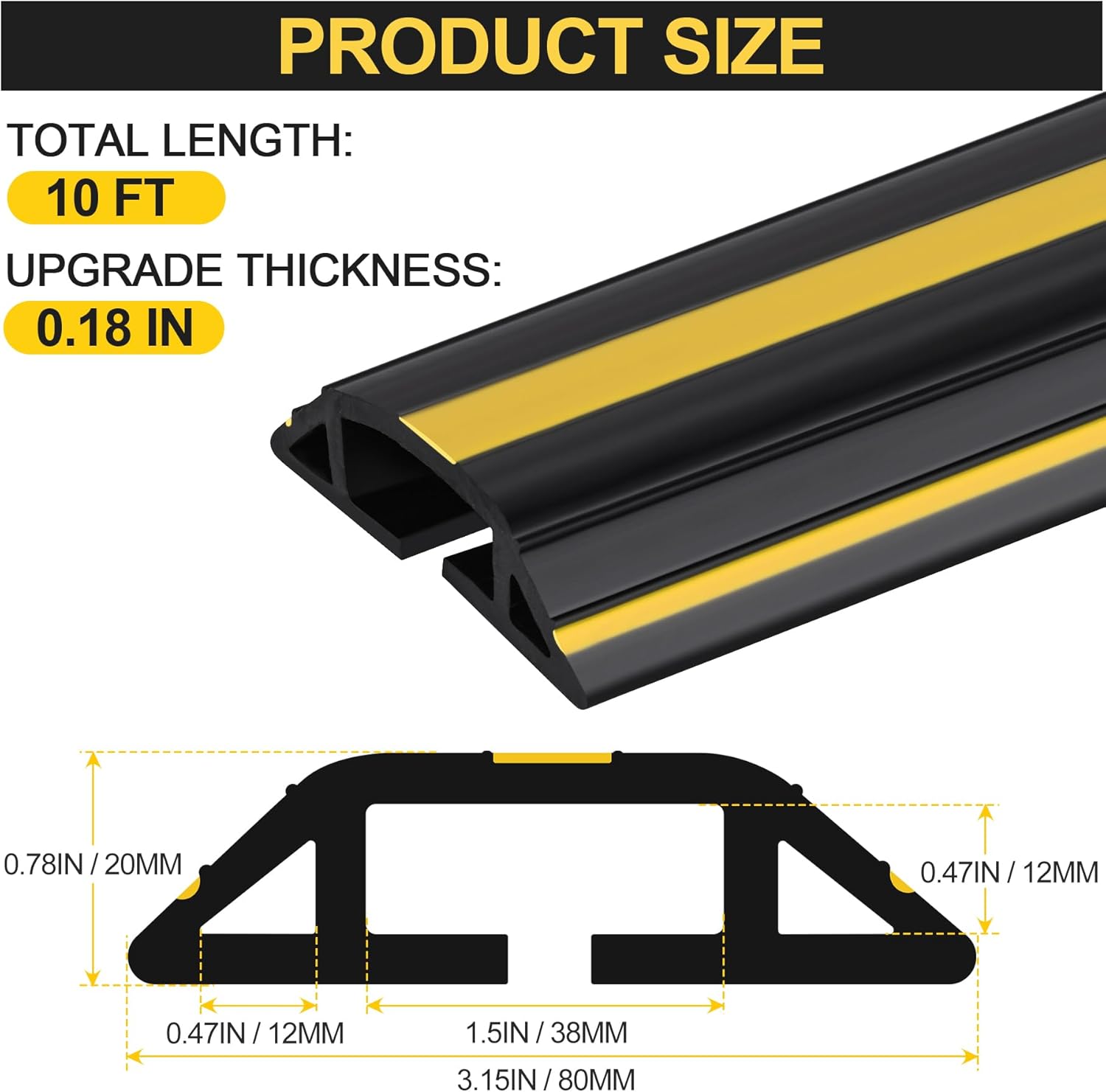 - 【Yellow Warning Stripes】Bright yellow stripe on top of extension cord floor cover. As high visibility warning sign, telling people to pay more careful attention. Cord cover for floor is very thick and will not easily move after use, making it neat and orderly. You can use it without worry. Tips: Please keep the surface clean and dry before use
