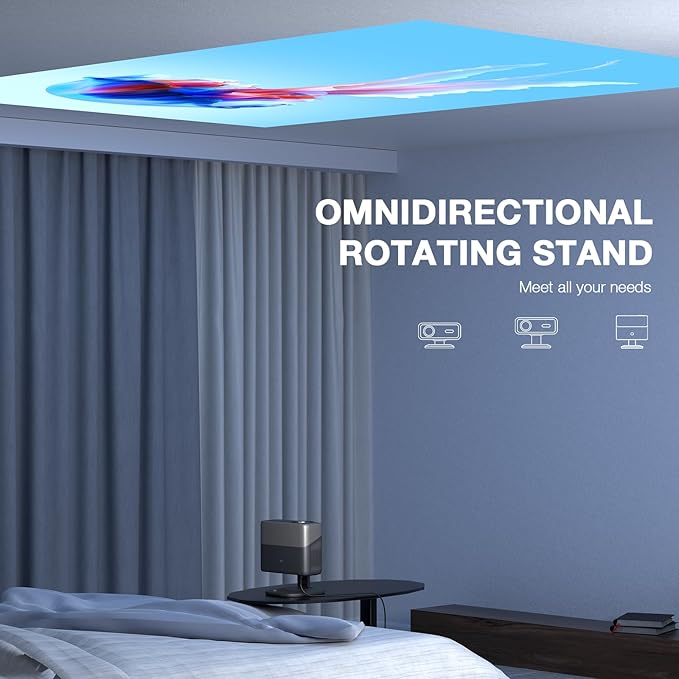 - [Unique Removable and Foldable Stand] The AuKing projector features a unique removable and foldable stand for flexible wall or ceiling projection, allowing comfortable viewing at any angle while maintaining stability. Slightly larger than pocket projectors at 10.3×8.2×4.3 inches and 7.7 lbs,4K Projector delivers twice the brightness and sharper image quality, making it ideal for both indoor movie nights and outdoor adventures - remove the stand when portability is key.