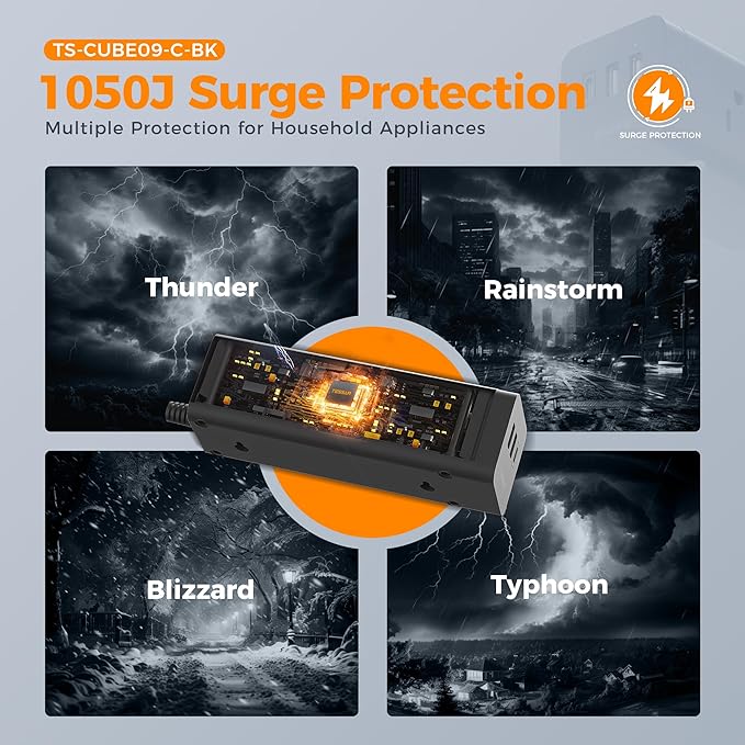 - 1700J Surge Protector: This power strip surge protector protect your devices, such as computer and other electronics, from power surges and spikes, providing you with a secure and reliable charging environment