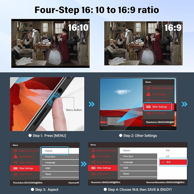 - 【Portability Meets Performance】The 16-inch screen size offers ample display space while maintaining portability. This means you can easily use it in various environments, whether it's your office, home, or while traveling. You'll enjoy high-quality visuals wherever you go.