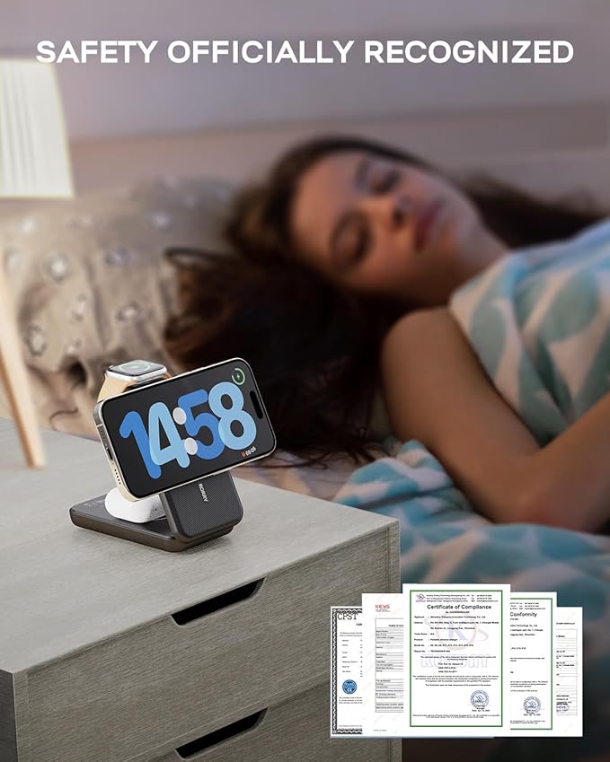 - Foldable and Travel-Friendly: This foldable 3-in-1 for MagSafe power bank fits effortlessly in your purse or pocket, replacing tangled cords and bulky chargers. Whether youβre traveling or on a business trip, it powers all your devices while taking up minimal space, making it the perfect all-in-one travel accessories.