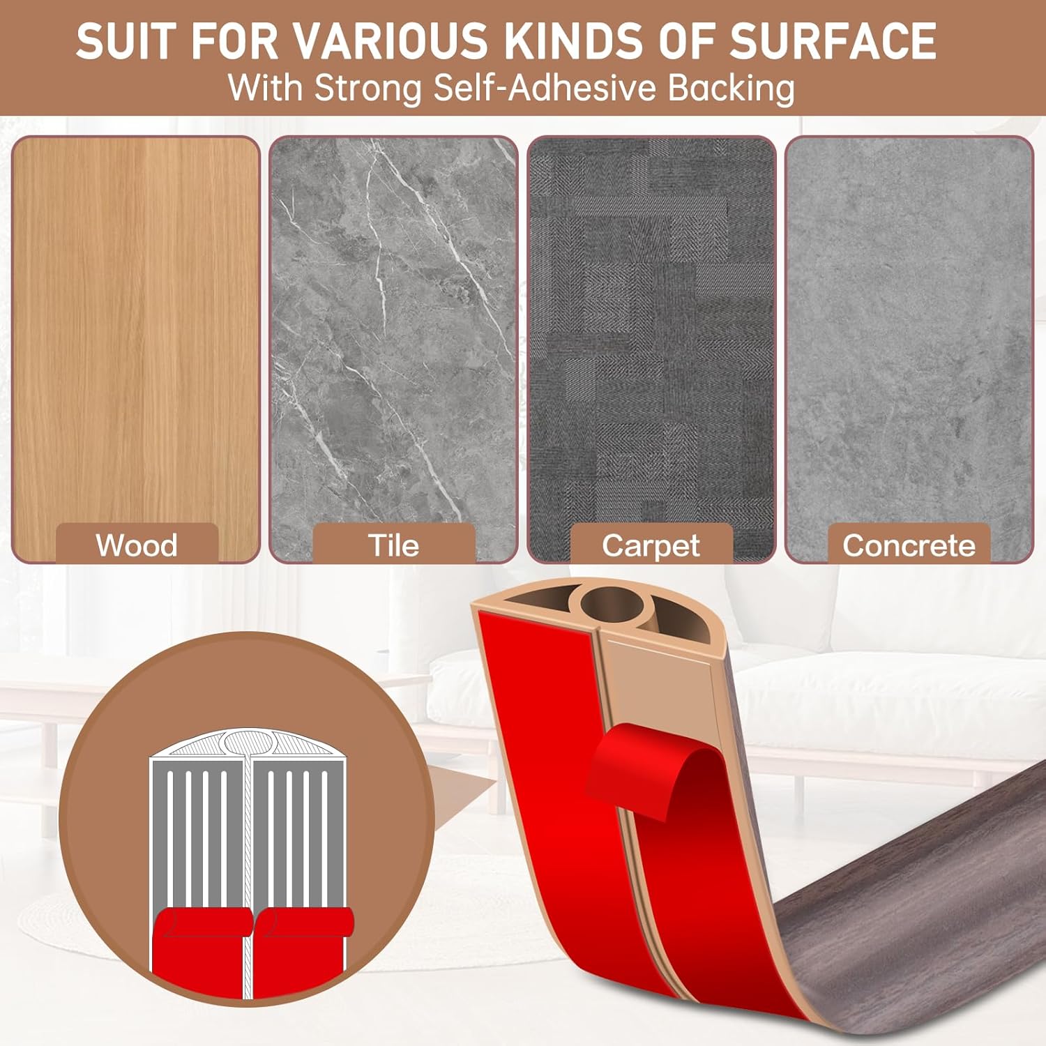 - Strong Adhesive Backing: The cord cover floor has a strong adhesive tape, making installation easy. Simply cut the desired length and place the wire in the channel. Peel off the film and stick it to any floor or wall edge, including hardwood floors, tiles, or carpets.