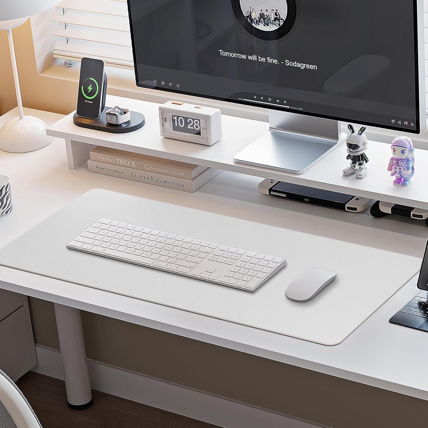 Boutilon Leather Desk Pad Protector,Non-Slip Mouse Pad,Laptop Desk Pad,Office Mouse Mat,Waterproof Leather Desk Blotter,Desk Writing Pad for Office and Home (L-White,35"x 17")
