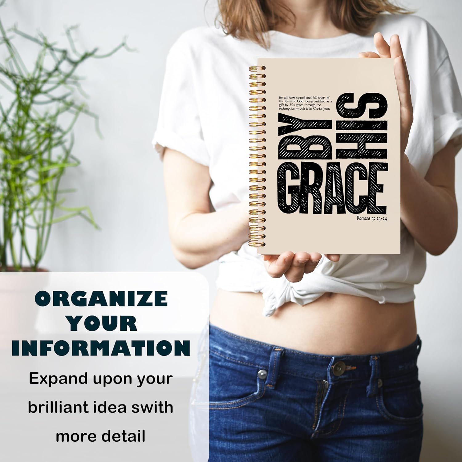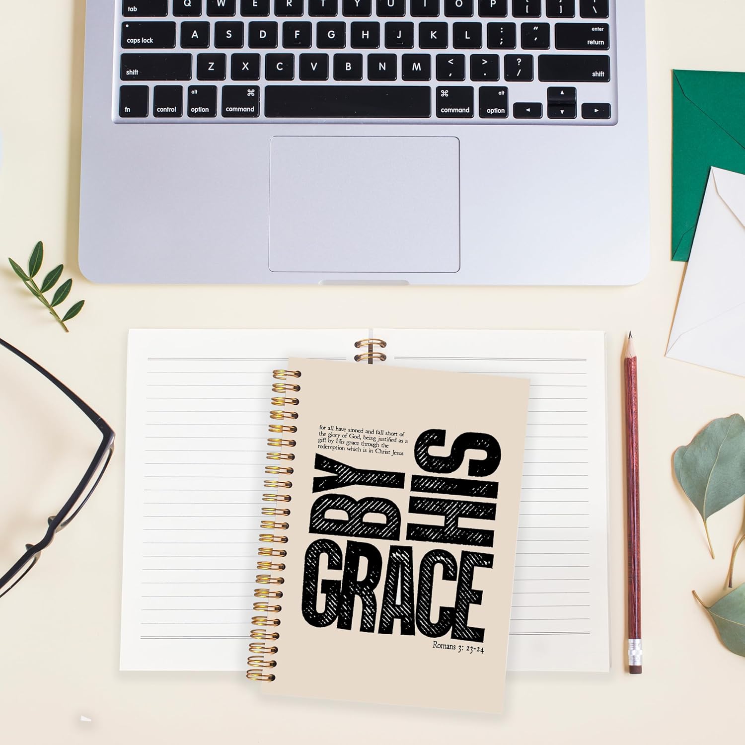 BearCake Christian Notebook Journal, Christian Gifts for Women, By His Grace Scripture Prayer Journal for Women, Bible Journaling Neutral Hardcover Spiral Notebook 5.5x8.3