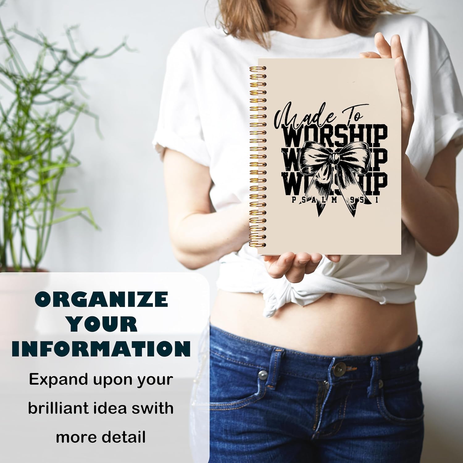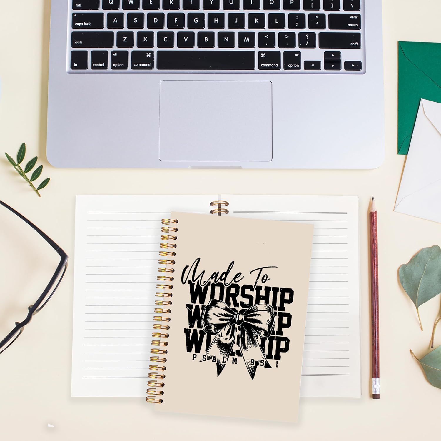 BearCake Christian Coquette Bow Notebook Journal, Made to Worship Prayer Journal for Women, Preppy Christian Gifts for Women, Bible Journaling Neutral Hardcover Spiral Notebook 5.5x8.3