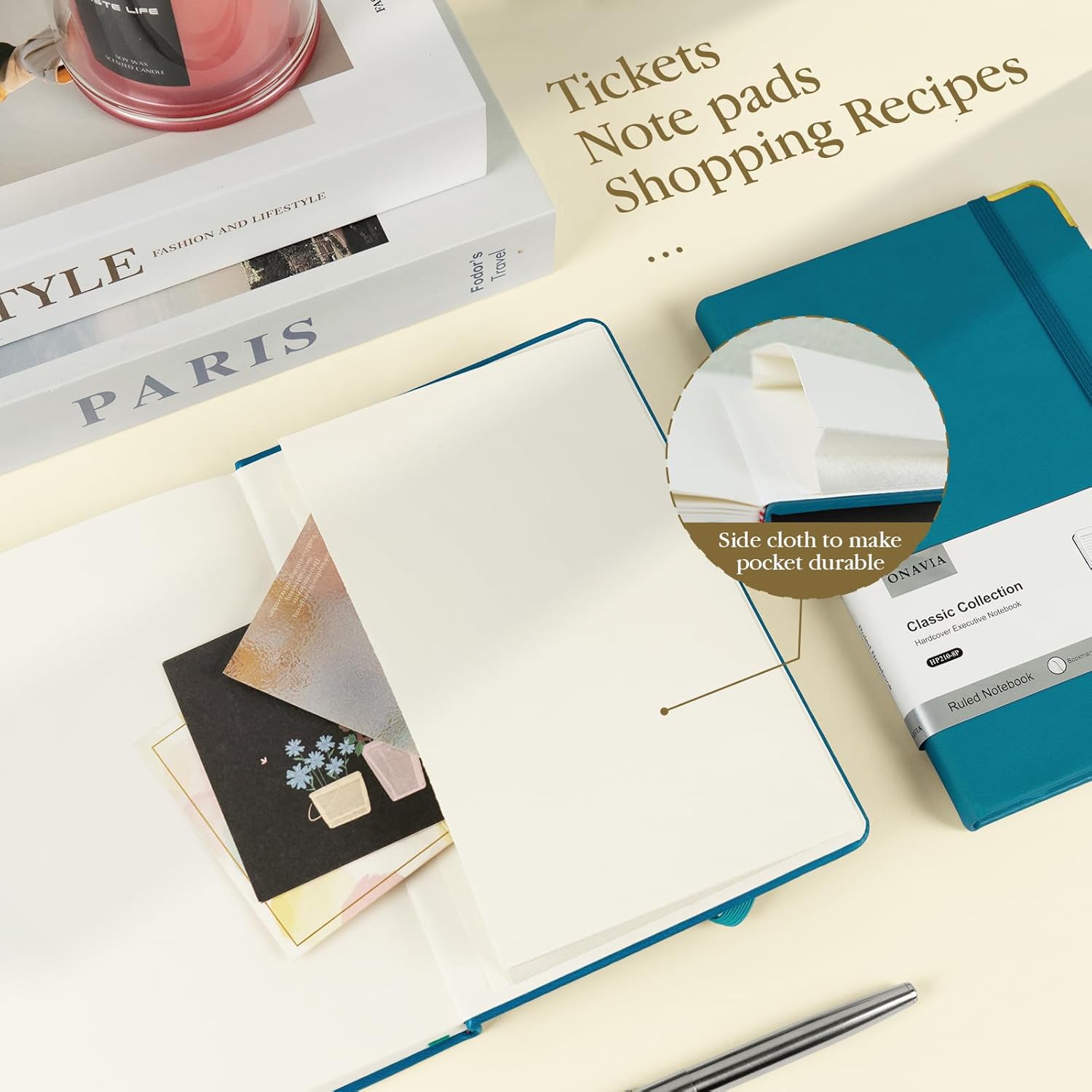 - Hardcover Journal Notebook: ONAVIA a5 journaling notebooks feature a durable and water-resistant faux leather cover, and 80 sheets/160 pages high-density hard thick paper. The exquisite golden corner design not only protects the edges of the lined note books from damage caused by external impacts but also enhances its aesthetic appeal and lends an air of sophistication