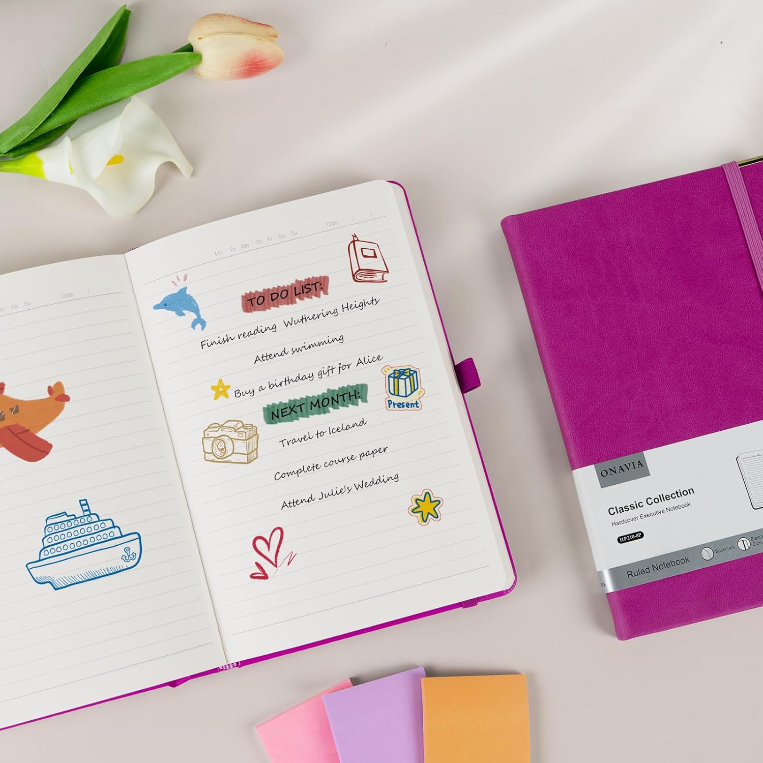 - Hardcover Journal Notebook: ONAVIA a5 journaling notebook features a durable and water-resistant faux leather cover, and 80 sheets/160 pages high-density hard thick paper. The exquisite golden corner design not only protects the edges of the lined notebook from damage caused by external impacts but also enhances its aesthetic appeal and lends an air of sophistication