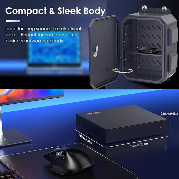 - 【5 Port Gigabit Network Switch】 Incorporating 5 Gigabit Ethernet Ports (1 WAN + 4 LAN) for rapid 1000/100/10Mbps connectivity and seamless networking. All LAN ports support active PoE power supply compliant with IEEE 802.3AF/AT standards, ensuring reliable power and data transmission. Tips: The lower-level devices must support the 802.3at/af protocol to receive power supply
