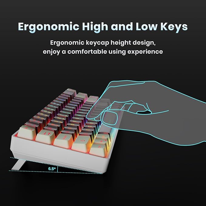 - 【65% Compact Design】GEODMAER Wireless gaming keyboard compact mini design, save space on the desktop, novel red & white keycap color matching, separate arrow keys, No numpad, both gaming and office, easy to carry size can be easily put into the backpack