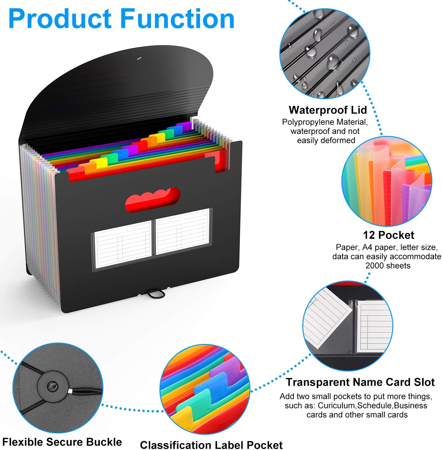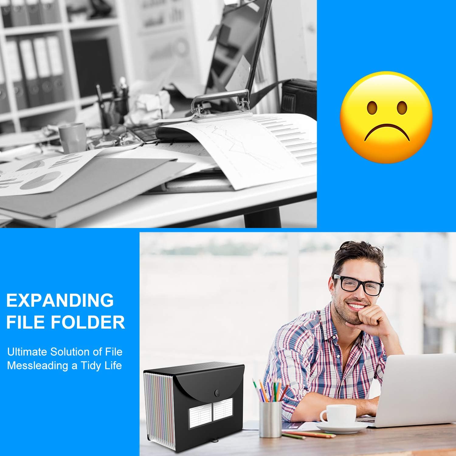 - 【Quick Access & Easy to Categorize】: Bright, color inner pages and Jan - Dec tab, just take a glance and locate. The tabs is clear and easy to read, not obscured by files.Use 2 additional front pockets for business cards, project title cards or notes.