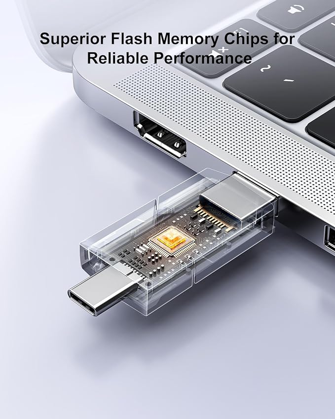 - 2-In-1 Dual Flash Drive: This dual flash drive with USB-A and USB-C ports works with your type-c smartphone, iPhone 15/15 Pro/15 Pro Max, tablet, laptop, Mac, car audio systems, gaming consolesand, etc