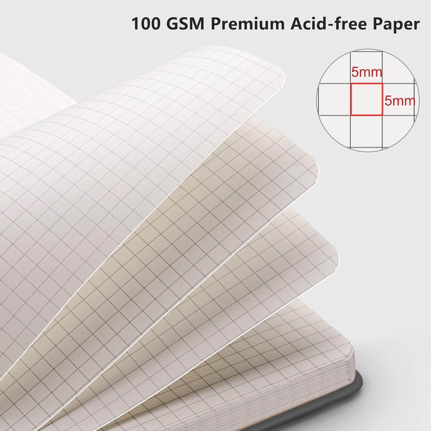 - PREMIUM PAPER: Crafted with time-resistant 100 GSM paper, our graph notebook preserves thoughts flawlessly while resisting ghosting/bleed-through with most pens. Acid-free material ensures long-term preservation, and its smooth surface enhances writing clarity - blending durability and premium performance