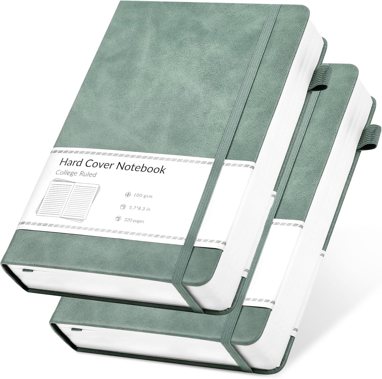 CAGIE 2 Pack Journal for Women Men 320 Pages 100 Gsm Paper Thick Journaling Notebooks A5 Leather Lined Journals for Writing Hardcover Journal Notebook Diary, Green