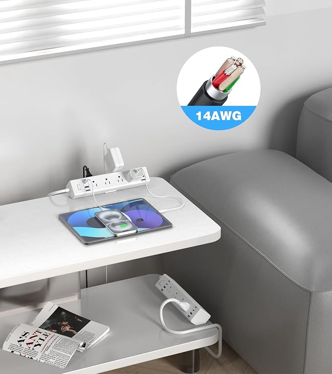 - 【45° Flat Plug & 14AWG Heavy Duty Power Cord】The 45° flat plug allows easy access to wall sockets, even in tight spaces or behind furniture. Comes with a 14AWG heavy duty 10Ft power Cord. Adopting pure copper wire core to prevent equipment overload and short circuit, it can protect your equipment well.