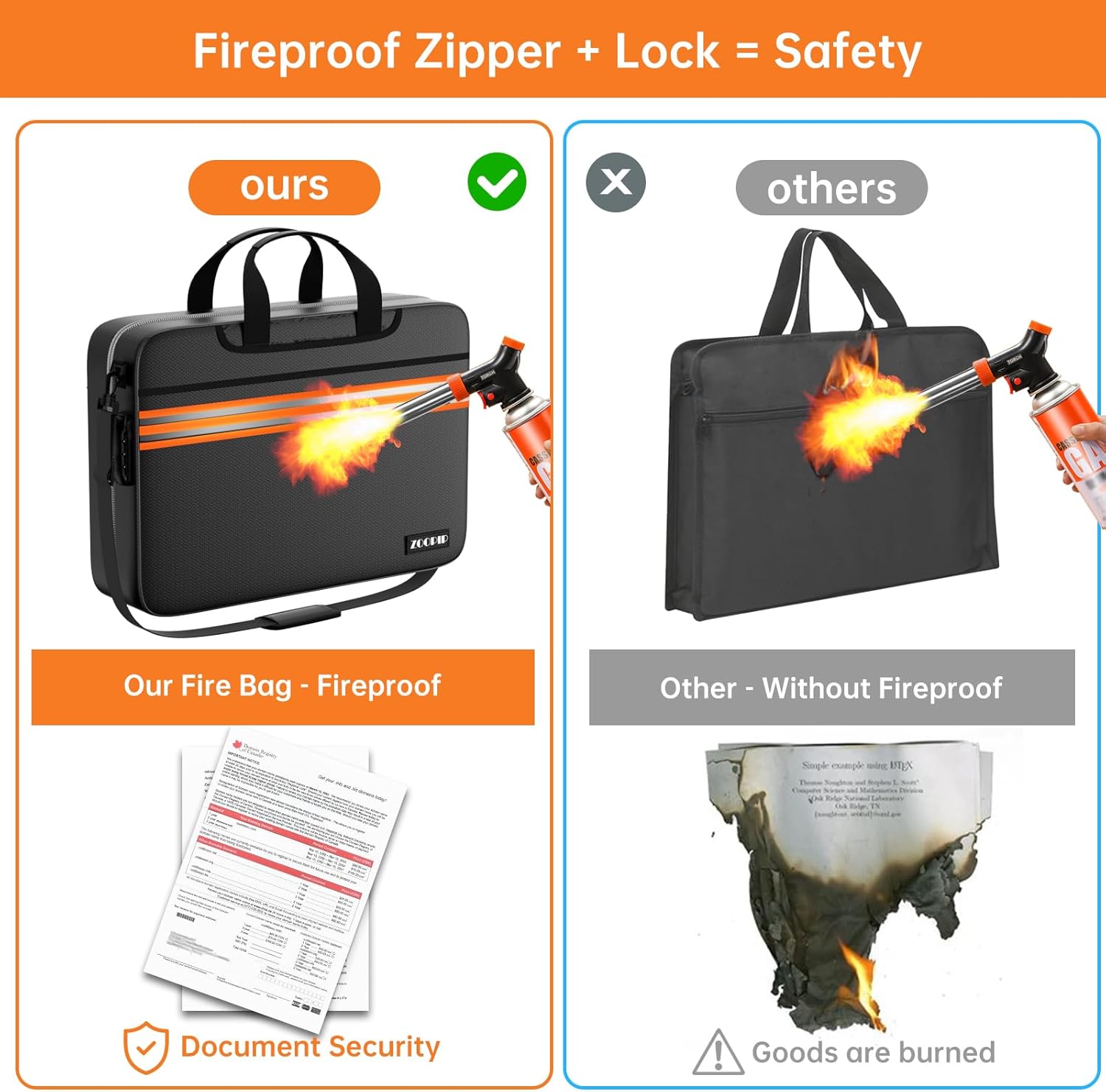 - 【Fireproof and Water Resistant】ZOOPIP fireproof Accordion File Organizer is made of not sticky Dust-proof Silicone coated fiberglass, which can withstand temperatures up to 5200°F.Fireproof file bag with zipper closure has been passed by SGS TEST:UL94 VTM-0 Certified.At the same time, the glass fiber has excellent waterproof performance.Even when it rains, it is not afraid of water.Splash resistant design, no fear of heavy rain.You go straight ahead, and our bag will escort your important documents!